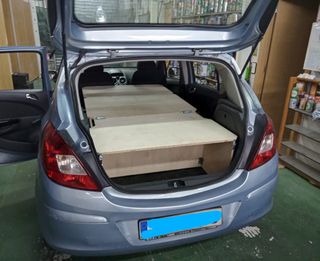 Compra tu kit camper desde 270 euros y disfruta de tus escapadas en minutos. Sin necesidad de modificar tu vehículo, podrás aprovechar los fines de semana al máximo. Fabricados en madera de contrachapado fenólico de pino BWP de 15mm. Nuestros kits ofrecen gran resistencia, ligereza y de fácil almacenamiento gracias a su plegado compacto. Adaptable para cualquier modelo de turismo, Opel Corsa, Seat Ibiza, Ford Fiesta, Peugeot 206... etc Medidas extendido 170*90*29cm. Plegado 60*90*16cm. Respondemos tus dudas en el tlf 603346288. Consúltanos!