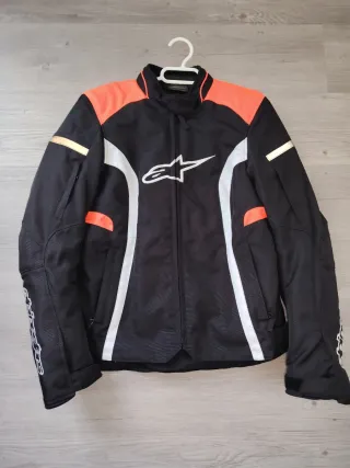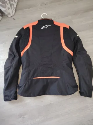 Chaqueta de moto Alpinestars para muje está sin estrenar, talla M. - Color negro con detalles en naranja y blanco. - Logo de Alpinestars en blanco en el pecho. - Bandas reflectantes en mangas y hombros.