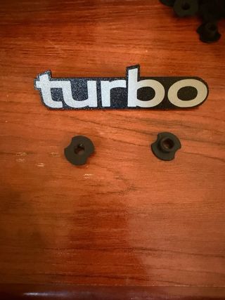 Logotipo Turbo de Saab, diseñado para alfombrillas. Fabricado en 3D, posibilidad de personalizar los textos, colores y dimensiones. - Diseño en relieve con acabado plateado y negro. - Ideal para personalizar el interior de tu vehículo.