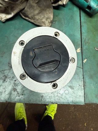 Tapón de depósito para motocicleta, con un diseño grande y robusto. Incluye 2 llaves para un acceso seguro. - Material: Metal y plástico. - Color: Plateado y negro creo que es para suzuki gsxr, pero no estoy seguro