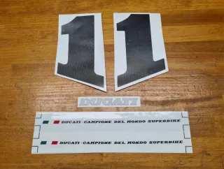 Vendo adhesivos para colín monoplaza de Ducati SuperSport 400 600 750 900ss tipo SuperLight. Se entregan dos números 1 con forma para cada lado en negro satinado + 2 Campione del Mondo Superbike en transparente con laminado protector y texto Ducati para la parte superior del colín. Sólo lo que se ve en las fotos del desglose, ni más ni menos. El porta dorsal blanco NO ESTÁ INCLUIDO. No se aceptan ofertas por este artículo. Hago envíos