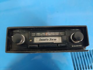 Radio cassette Sanyo con sintonizador AM/FM y reproductor de casetes,con caja para extraíble ideal para coches clásicos, radiocasete de la época. - Sintonizador AM/FM. - Reproductor de casetes. - Marca: Sanyo.