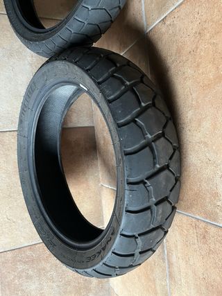 Juego de neumáticos Michelin Anakee Adventure. - Diseñados para ofrecer un rendimiento versátil. - Compuesto de goma duradero. - Patrón de banda de rodadura optimizado para agarre en diversas superficies.