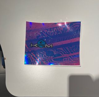 Pegatina con diseño holográfico y acabado brillante. Presenta el logo KRM. - Diseño KRM. - Acabado holográfico.