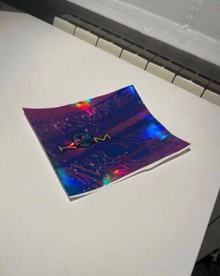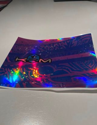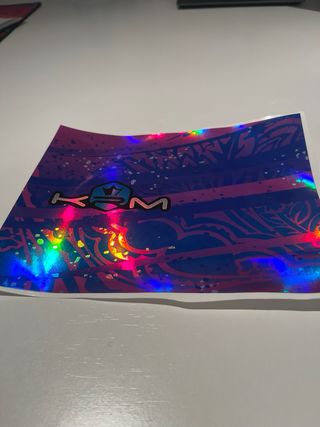 La vendo porque al final no se la he puesto al silenciador, la he bajado de precio aun asi habiendome costado 45€ en studio 27‼️PRECIO NO NEGOCIABLE‼️Pegatina con diseño holográfico y acabado brillante. Presenta el logo krm en el centro. - Diseño con fondo azul y morado. - Efecto holografico y brillante. - Nueva