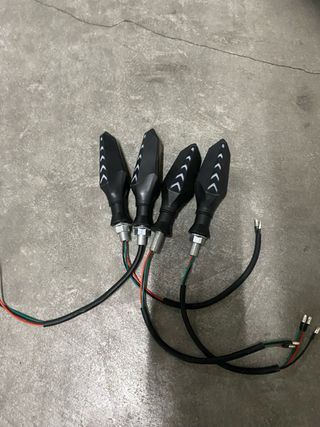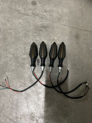 Juego de 4 intermitentes LED universales con diseño deportivo. - Diseño tipo flecha. - Carcasa negra. - Luces LED ámbar.