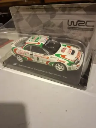 Réplica detallada del Toyota Celica Turbo ST185, modelo de rally de 1994. - Escala 1:24. - Decoración del equipo Castrol. - Incluye dorsal número 8. - Réplica del coche de Auriol-Occelli en el Rallye Sanremo 1994.