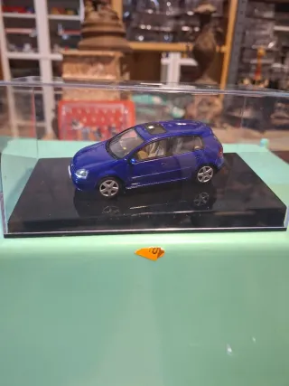 Réplica detallada de un Volkswagen Golf TDI de 5 puertas. - Color azul brillante. - Interior en tono claro. - Techo solar. - Presentado en una vitrina protectora.