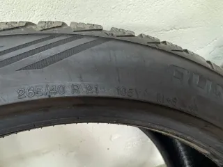 Neumático Vredestein en medida 265/40 R21. - Índice de carga 105. - Código de velocidad Y. - Marcado M+S (Mud and Snow). - Símbolo de copo de nieve en montaña (3PMSF).