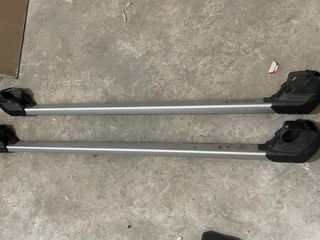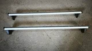 Juego de dos barras portaequipajes de aluminio. - Diseño aerodinámico. - Tapas de plástico negro en los extremos. Marca vw comprados en la casa para un Volkswagen variant. Se dispone tambien de porta bicicletas thule se hace precio por todo el conjunto