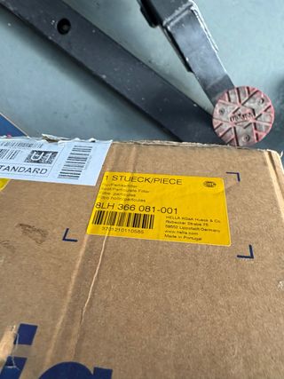 Filtro de partículas HELLA nuevo, referencia 8LH 366 081-001. Vale 900€ en autodoc - Fabricado en Portugal. - Marca: HELLA KGaA Hueck & Co. - Dirección del fabricante: Rixbecker Strabe 75, 59552 Lippstadt/Germany.