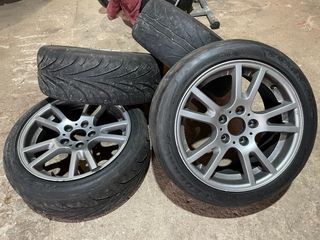 Juego de 4 llantas originales de X3 E83 en medidas 8J17, ET46, 5x120. Neumáticos semislicks Federal: 2x Federal 595 RS-R en 215/45ZR17 87W al 60%. 2x Federal 595 RS-PRO en 225/45ZR17 94W al 40%. Ideales para slaloms, subidas, etc.