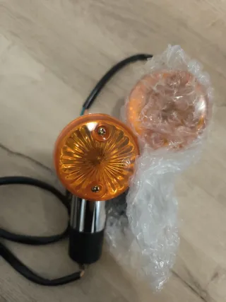Se vende pareja de intermitentes estilo custom con carcasa cromada y lente naranja. - Diseño clásico. - Lente de plástico naranja. - Cuerpo metálico cromado. No se han usado nunca pero tienen un arañazo