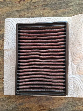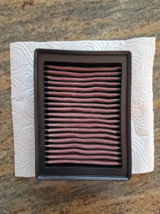 Filtro de aire de la marca K&N para KTM 1290 superadventure de 2015 a 2025. - Cuidado y mantenido. - Color: Rojo y negro. - Material: Tela y plástico.
