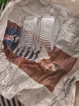 Lote de tulipas y pilotos para intermitentes de vehículos. - Variedad de formas y colores, incluyendo ámbar, rojo y morado. - Diseños rectangulares, redondos y ovalados. - Algunos presentan texturas internas o externas.