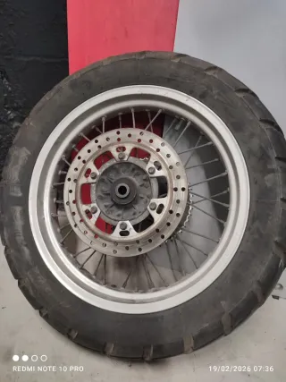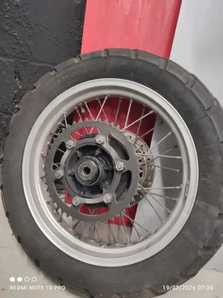 Rueda trasera completa para Yamaha XTZ 750. Incluye llanta, radios, neumático y corona. - Llanta de radios. - Neumático Michelin. - Corona de transmisión.