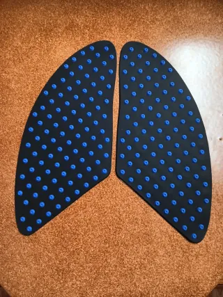 Par de almohadillas negras para moto con un diseño de puntos azules nuevas sin estrenar - Diseño con relieve. - Material antideslizante.