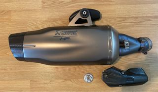 Escape Akrapovic HP para BMW R1250GS Adventure HP valido tambien para la bmw r1200gs adventure lc a partir del 2014. Fabricado en titanio y carbono. Venia con la moto de fabrica con 55.000 klmts de uso. Tan solo tiene unas manchas, creo que de suciedad del uso, que son casi inapreciables a la vista y que casi todos los modelos de este modelo de escape lo tiene usados (ver foto 6). Viene con su embellecedor de carbono y sus tornillos y la arandela del soporte. Se puede ver sin compromiso. Tambien hago envios. Escucho ofertas razonables.