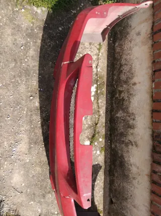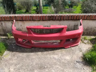 Paragolpes delantero de estilo tuning fibra vidrio no se el modelo en color rojo. Presenta una rejilla deportiva en la parte superior e inferior. - Diseño agresivo. - Rejilla de panal. - Preparado para luces auxiliares.