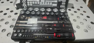 Maletín de herramientas Wurth con carraca y vasos fabricados en acero. Incluye una selección de vasos y accesorios. - Maletín de transporte. - Carraca de acero. - Vasos de acero de diferentes tamaños. - Extensión para carraca.