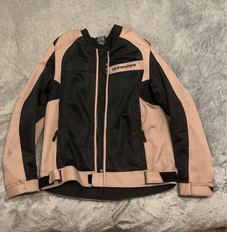 Chaqueta de moto Alpinestars en color negro y beige con protecciones en hombros y codos de gel