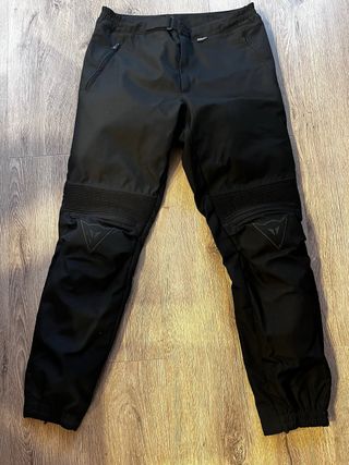 Pantalón de moto dainesse en perfecto estado. - Material cordura - Forro con membrana de goretex - Cremallera para unir a la chaqueta - Cremalleras en los bolsillos. - Protecciones en rodillas y espinilla - Color negro - Talla 54 - Logo de la marca en las rodillas.