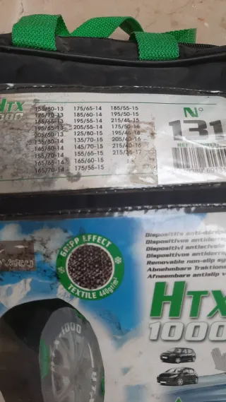 Cadenas de lona para nieve modelo HTX 1000. Cadenas para coche , son textiles o lona, para la nieve. - Fabricadas con efecto grip textil. - Incluye bolsa de transporte. - Homologadas para 50 km/h.