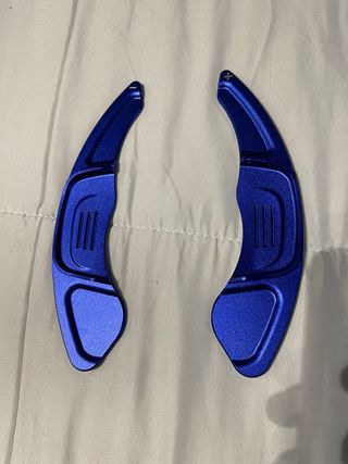 Extensiones para levas metálicas Fabricadas en aluminio Color azul Fácil colocación con adhesivo a medida Para cualquier modelo con volante R-Line, GTI, GTD, GTE y R (2014, 201, 2016, 2017, 2018, 2019 y 2020) (Lupo, Polo Golf, Passat, Arteon, T-Cross, T-Roc, Tiguan, Touareg)