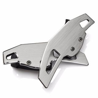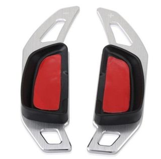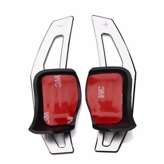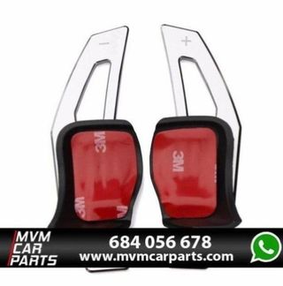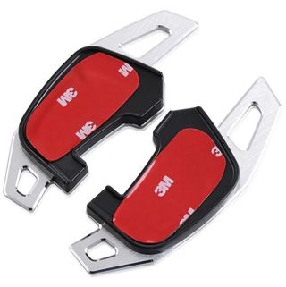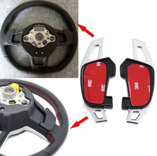Set de 2 extensiones de levas para volante de Volkswagen Golf VII look GTI Compatibles con versiones GTI, GTD , R , o GTE Terminación en plata cepillado.