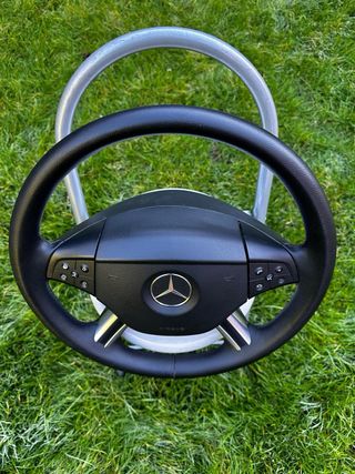 Volante de cuero negro para Mercedes-Benz ML W164 completo con Airbag y Levas. En perfecto estado y sin ningún desgaste. Está impecable. No ha sido restaurado ni limpiado.