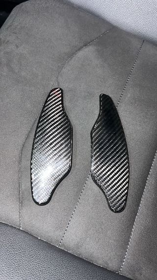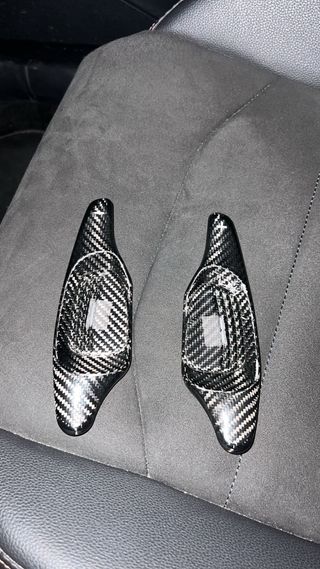 Levas de cambio en acabado de carbono para CUPRA. - Material: Fibra de carbono. - Diseño deportivo y ligero.