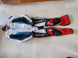 Mono de moto de piel de canguro con diseño BMW Motorsport. - Diseño deportivo y aerodinámico. - Protecciones integradas en rodillas,codos, cadera y espalda. - Cremalleras de alta calidad. - Forro interior transpirable y desmontable. Talla ideal personas de 175 a 178cm. Complexión fina, peso aprox 68-72kg. Tiene un leve roce en el culo. No tiene más de 10 puestas. Está muy bonito. Muy cómodo y flexible.