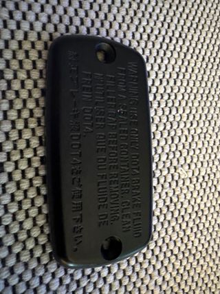 Tapa para el depósito del líquido de frenos. - Fabricada por Grimeca. - Advertencia: Usar solo líquido DOT3-4 de un envase sellado. - Limpiar el tapón antes de retirar.