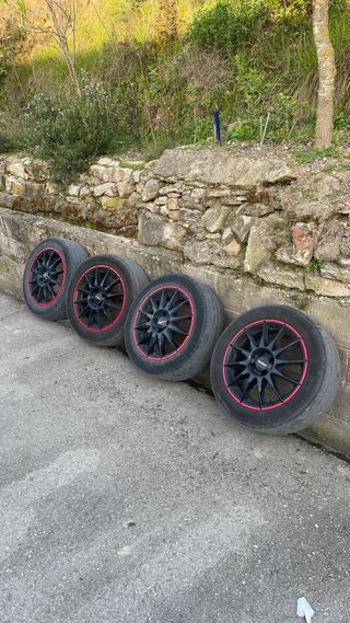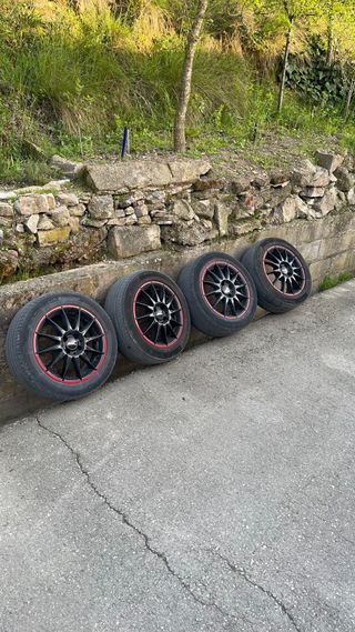 Pack de 4 llantas de 16 pulgadas con neumáticos. Color:JETBLACK RED RIM Tamaño:16 Tornillos:4 Pcd:100 Et:38 Ancho:7 (Precio negociable) #oferta #llantas #coches