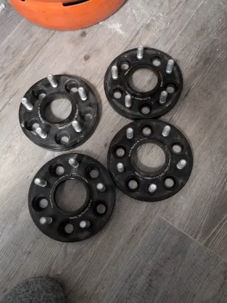 Set de 4 separadores de rueda de aluminio. - Fabricados en aluminio forjado 7075-T6. - Medidas: 5x108 (PCD) y 65.1mm (CB). - Grosor: 2 de 15mm y 2 de 20mm. - Marca: BLOX Racing BL Series. - Incluyen todos los tornillos y tuercas para llantas con asiento plano como los nuevos Opel, Citroen o Peugeot - También tuercas negras para llanta con asiento de tornillo cónico y adaptadores para ponerlos en llantas con asiento plano