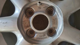 Juego de llantas Targa de 14 pulgadas con anclaje 4x100, ideales para Volkswagen. No estan perfectas, una de ellas habría que darla una repasada, en las fotos se ve - Diseño deportivo con detalles en dorado. - Acabado plateado en la estructura principal. - Incluye tapa central con logo VW