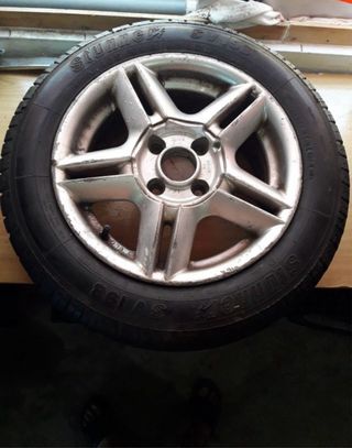 Se venden dos llantas SEAT de 14 pulgadas con tornillería 4x100. Los neumáticos incluidos tienen muy poco uso, solo unos 2000 km. - Llantas SEAT. - Diámetro: 14 pulgadas. - Tornillería: 4x100. - Neumáticos con 2000 km de uso