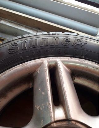 Juego de llantas de 14 pulgadas, tornilleria 4x100, válidas para Renault/ Opel. Neumáticos 175/65/14 aún aprovechables.