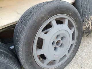 Juego de llantas de 15 pulgadas 4x100/4x114 Neumáticos 80% Bmw e30,golf mk2,mk2,mk3...... Centradores y tapas de bmw nuevas.