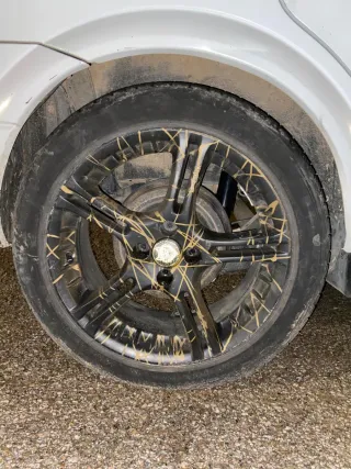 Juego de llantas con diseño deportivo. - Patrón de pernos 4x100. - Acabado en negro con detalles dorados. Las vendo porque necesito el dinero, las llantas están para llegar y montar, algo feas por la pintura pero no tienen rajas ni fisuras, están aún montadas en el coche, actualmente en un Opel Astra g pero son válidas para grupo Volkswagen etc, neumáticos al 85%, son 17" URGE VENTA