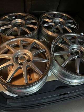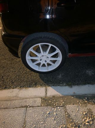 Juego de llantas Compomotive TH2 en color blanco. - Medida: 8x17 pulgadas. - Tornilleria 4x100 et 35 - semislicks zestino al 90% 215/40r17 Llantas y neumáticos se compraron y montaron a la vez en julio del 2024 tienen 7000km (los neumaticos aun tienen los "pelillos". La llanta trasera lado copiloto tiene un pequeño roce hecho al aparcar, solo salto un poco de pintura, nada mas el resto impecables. Se venden por bajar de nuevo a 15" Preferiblemente venta en persona.
