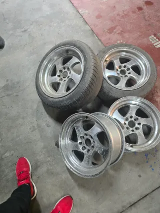 Juego de 4 llantas Speedline Grupo A de 17 pulgadas en 4X100, ET 40 ,válidas para Opel, Renault..ect... Están en un estado excepcional ni golpes ni rasguños, solo usadas para concentraciones. Tienen un centrador para opel astra gsi, (56,6) pero si se le quita sirve para más modelos. Se venden con dos neumáticos Bridgestone Potenza y dos neumáticos Uniroyal Rain Sport3 en medidas 215/40/17 seminuevas. Se cambian también por unas braid fullrace en 16' de 4x100. - Incluyen tapas centrales, GTZ - Llantas de alta calidad.
