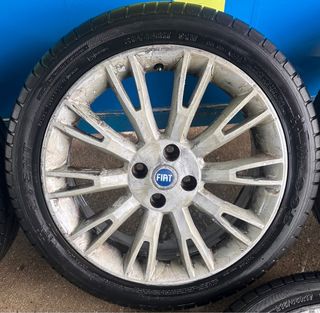 Vendo juego de 4 llantas de 17 pulgadas original Fiat Punto compatible con otras marcas de anclaje 4x100 Están usadas y presentan algunos arañazos superficiales, tal como se ve en las fotos. - Modelo Fiat Grande Punto Evo Chevrolet Cobalt - 6,5x17” - ET46 - Buje 56,6 - Se incluyen 4 llantas con neumáticos de regalo 215/45 para remplazar por fecha