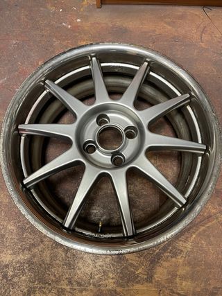 Dos llantas de 17 pulgadas con anclaje 4x100 et38. Las llantas están pintadas a spray