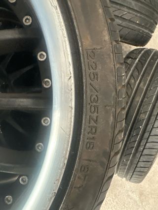 Juego de 4 llantas para Renault con medida 4x100. Mas dos neumáticos nuevos. Las llantas y neumáticos están a precio de ganga no negociable son un juego de llantas mas dos neumáticos de repuesto. - Medida 255/35ZR18 XL.