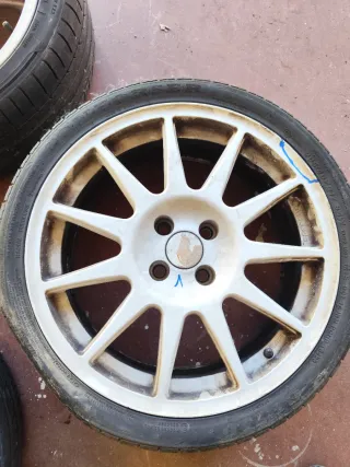 NO ENVÍO, ENTREGA EN MANO EN MADRID vendo llantas Speedline Turini buje Renault 4x100 17x7 et35 con neumáticos al 70% Están para repintar y una para reparar una doblez que tiene de ve en las 3 primeras fotos