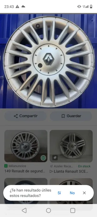 Juego de 4 llantas de aleación de 16 pulgadas con anclaje 4x100, compatibles con Renault Opel Seat 2 neumáticos al 70% y 2 para cambiar dispone de las 4 tapas - Diseño deportivo de 10 radios. - Acabado plateado. - Incluye tapa central con logo Renault.