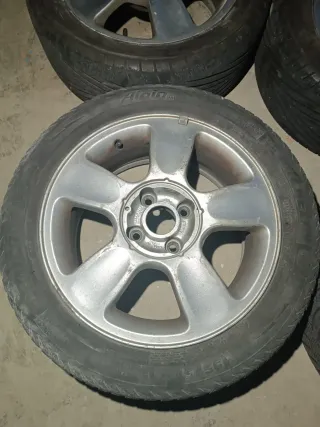 Juego de 4 llantas de aleación de 15 pulgadas. - Diseño de 5 radios. - Pertenecen a un Seat Ibiza. - Medida de anclaje 4x100. Dos de ellas con gomas al 90% Las otras dos están pinchadas. Negociable