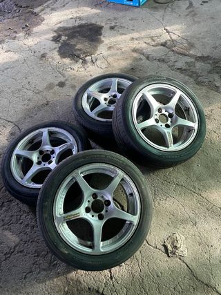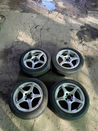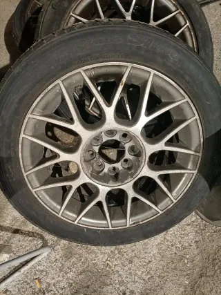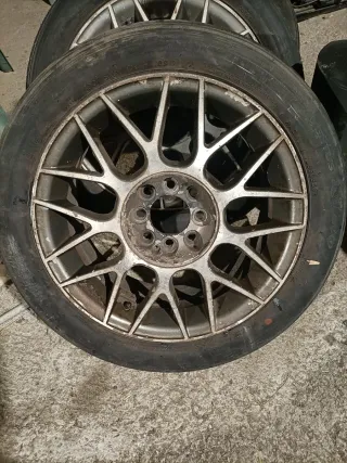 4 llantas réplica estilo BBS RC307 en buen estado, tornilleria 4x100, estaban montadas en un clio uno pero me dijeron que valian para seat tambien, dos neumáticos ventus s1 evo en buen estado y dos para cambiar, medidas 195 50 r15 estan algo sucias
