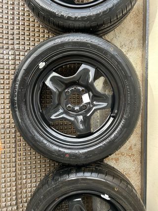 Juego de 4 llantas de aleación 4x100 para Diseño de 5 radios.2 neumáticos Bridgestone con 40% de uso,las otras dos se podrían entregar con neumáticos variando el precio
